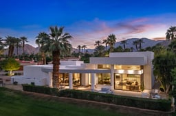Nestled within the exclusive guard-gated community of The Enclave at the La Quinta Resort & Club, this beautifully restored, designer-done custom home defines the ultimate in post modern architecture in the style of renowned architect Richard Meier. With over 5400 square feet and situated on the 13th fairway of the PGA West Pete Dye Mountain course, the bright open floor plan offers seamless indoor/outdoor living. Soaring ceilings and walls of glass capture spectacular Santa Rosa Mountain and golf course views. The well appointed large kitchen includes a casual lounge/dining area featuring double islands, designer grade s/s appliances, custom cabinets, slab granite counters and a separate wine vault/beverage center. A beautiful slab travertine-faced fireplace and sunken bar with its own ice maker/refrigerator anchors the elegant formal Dining Rm and Great Rm. The main living spaces open to an oversized outdoor patio providing multiple lounge/dining areas and includes a fire pit to enjoy sunset views overlooking the golf course. Just off the kitchen, in a separate area of the property, is the private pool and spa offering a setting reminiscent of "vintage Palm Springs" complete with lush green hedges, classic turquoise tile, a waterfall and a built in BBQ surrounded by mountain views. A spacious gallery hall, ideal for showcasing a personal art collection, leads to four en suite bedrooms and baths. One of the bedrooms has been converted to a cozy screening room. The other two guest suites have their own private patios and access to the pool. The luxurious primary suite features two full large separate bathrooms and walk-in closets, plus custom bedside cabinetry, reading lamps, fireplace, and an adjacent room for an office or gym. Immaculately maintained throughout, other amenities include an updated HVAC system, hardscape, landscaping, custom remote blackout shades, 3 tankless water heaters and electric vehicle charger. The lot is just under a half acre in a premium location, given its elevated setting over the golf course and position at the end of a cul de sac with no neighboring lot to the east. Also, The Enclave provides residents with access to their own community tennis court. All in prime South La Quinta... just minutes from the shops and restaurants at the iconic La Quinta Resort & Club and quaint Old Town La Quinta, The La Quinta Country Club, equestrian facilities and private jet access at Thermal Airport. Perfect! FURNISHINGS NEGOTIABLE